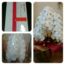 本日一周年記念のお祝いのお花屋やお菓子を